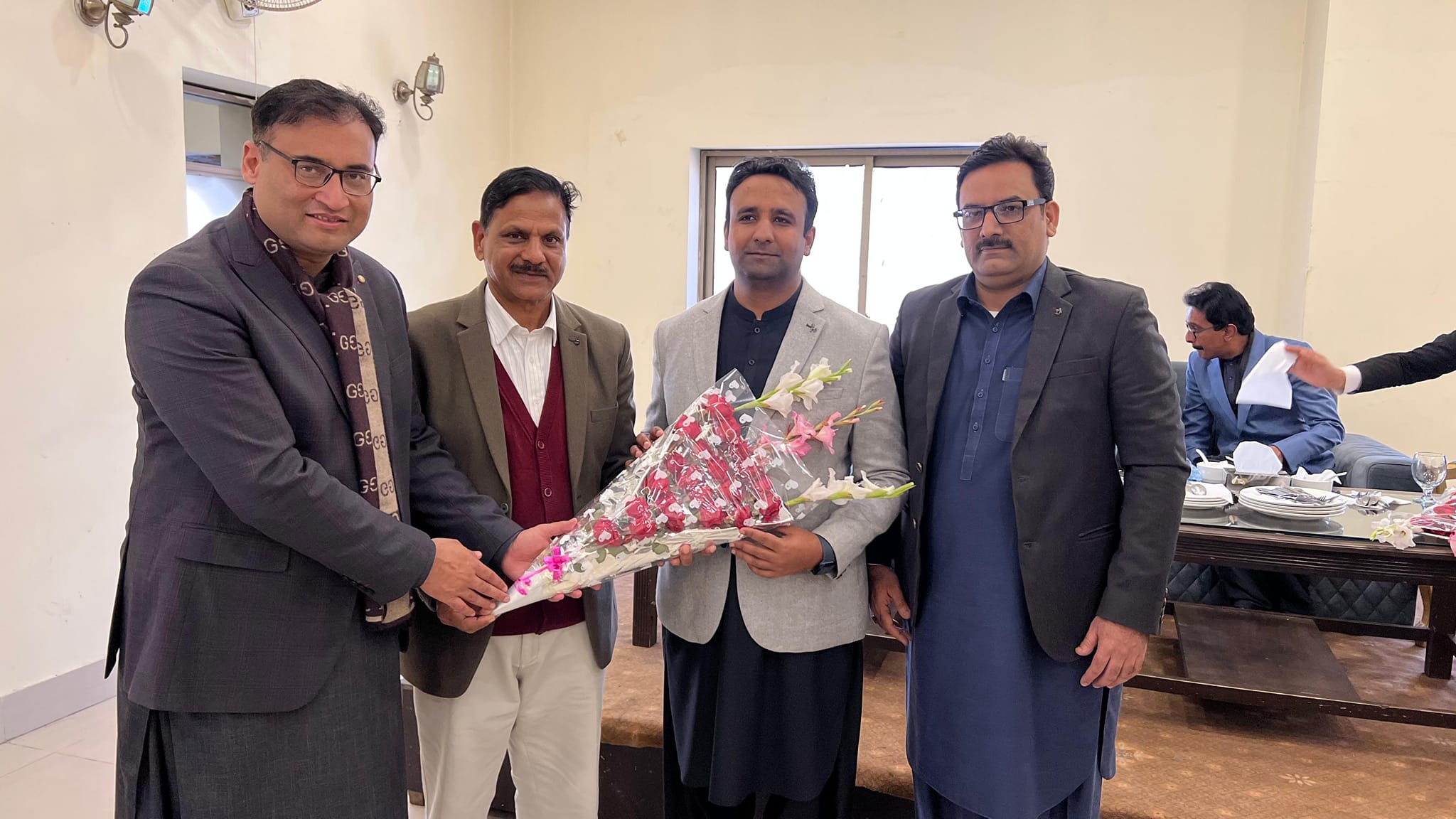 پنجاب ڈویلپرز کی ٹیم نے میٹنگ کا آغاز مہمان خصوصی اور سینئر شرکاء کے گرمجوش استقبال سے کیا۔ ٹیم ممبران نے مہمانوں کو پھول اور تحائف پیش کیے، جو احترام اور مہمان نوازی کی خوبصورت مثال تھے۔ تصاویر میں صاف نظر آتا ہے کہ ماحول خوشگوار اور پروفیشنل تھا، اور سب چہروں پر مسکراہٹ تھی۔